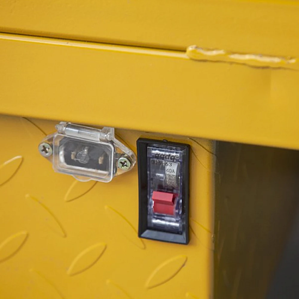 Тележка двигается за счет электродвижка с параметрами мощности 800 Вт. Управление проводится с помощью ручки акселератора мотоциклетного типа. Модель простая в эксплуатации, не требует особого обучения.