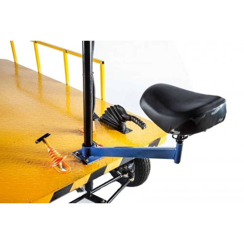 Техника оснащена удобным сиденьем, напоминающим по виду велосипедное и практичной простой рулевой частью. Не требует специального обучения.