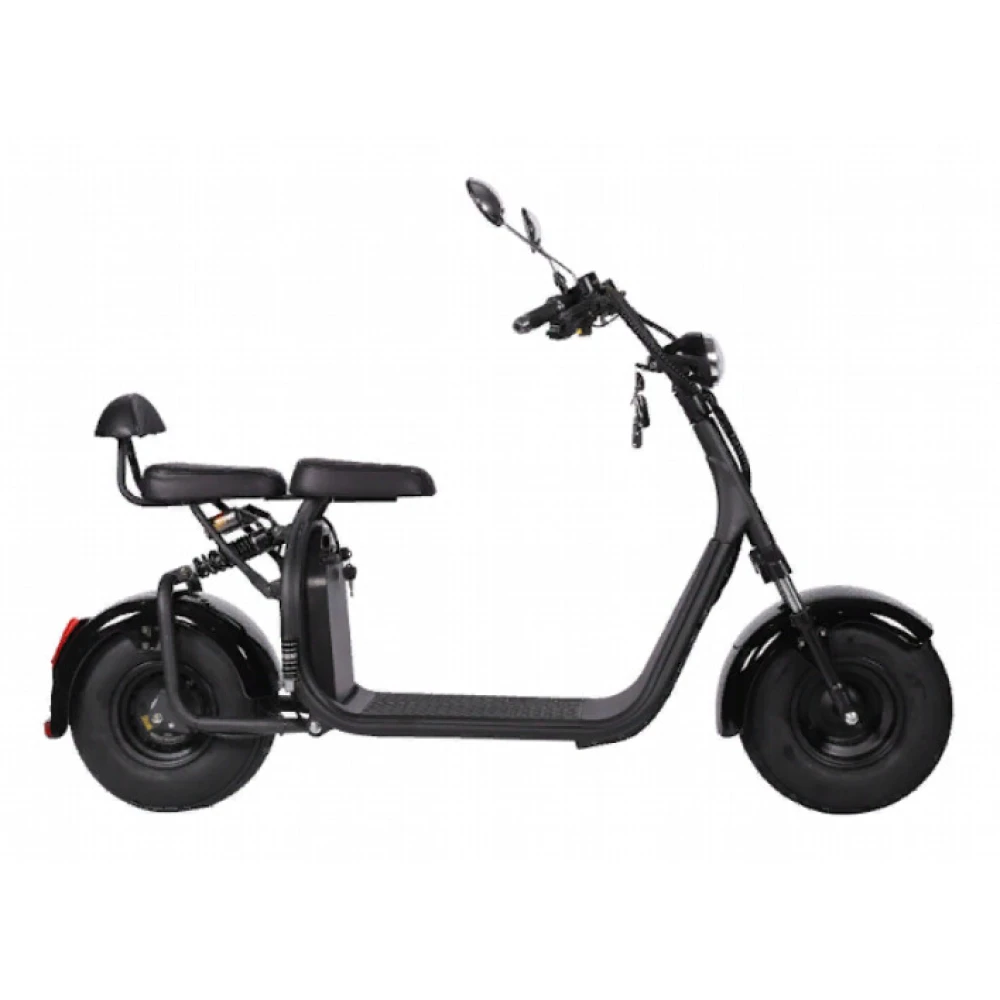 Электроскутер CityCoco Kugoo C2 PRO - усовершенствованный вариант уже полюбившейся и хорошо зарекомендовавшей себя модели. В данной модификации производители предусмотрели более мощный двигатель и аккумулятор. Теперь электроскутер быстро и плавно разгоняется до 45 км/час, легко преодолевает препятствия и подъемы. Одного заряда батареи хватает для преодоления 45-ти километров пути. Этого вполне достаточно для поездок в течение всего дня. Главным преимуществом данной модели является дополнительное сидение для пассажира. Улучшенная амортизация и усиленная подвеска позволяют пользоваться электроскутером вдвоем, что значительно расширяет область его применения. Благодаря широким 8-ми дюймовым колесам, ездить на электроскутере возможно не только по ровным городским улицам, но и по бездорожью. Данная модель оснащена качественной системой освещения. Яркая передняя фара, задние габаритные огни и поворотники повышают безопасность движения в темное время суток и предупреждают других участников движения о совершаемых маневрах. Надежные гидравлические тормоза чутко реагируют на команду райдера и гарантируют быструю остановку электроскутера Kugoo C2 PRO в экстренной ситуации.