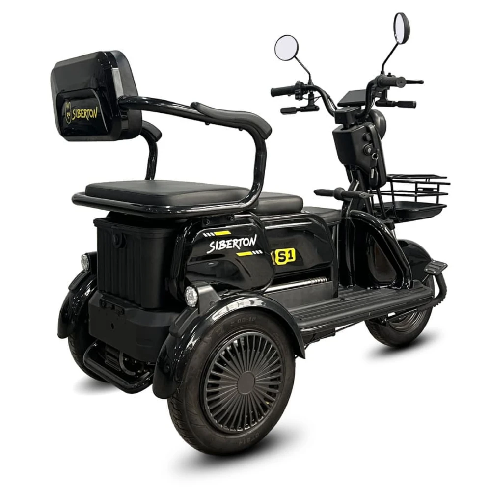 Электротрицикл Siberton S1 — компактный и манёвренный вариант для городских поездок и отдыха с мотором 2000 Вт, съёмным аккумулятором 60V 20–21 Ah и пробегом до 50 км. Эта модель сочетает устойчивость трёх колёс с лёгкостью управления, идеальна для новичков и курьеров.