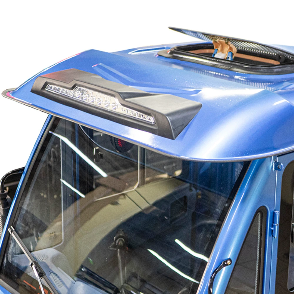 Темно-синий цвет трицикла придает ему стильный и привлекательный внешний вид. Этот цвет подчеркивает его профессиональное использование и делает его заметным на дороге.