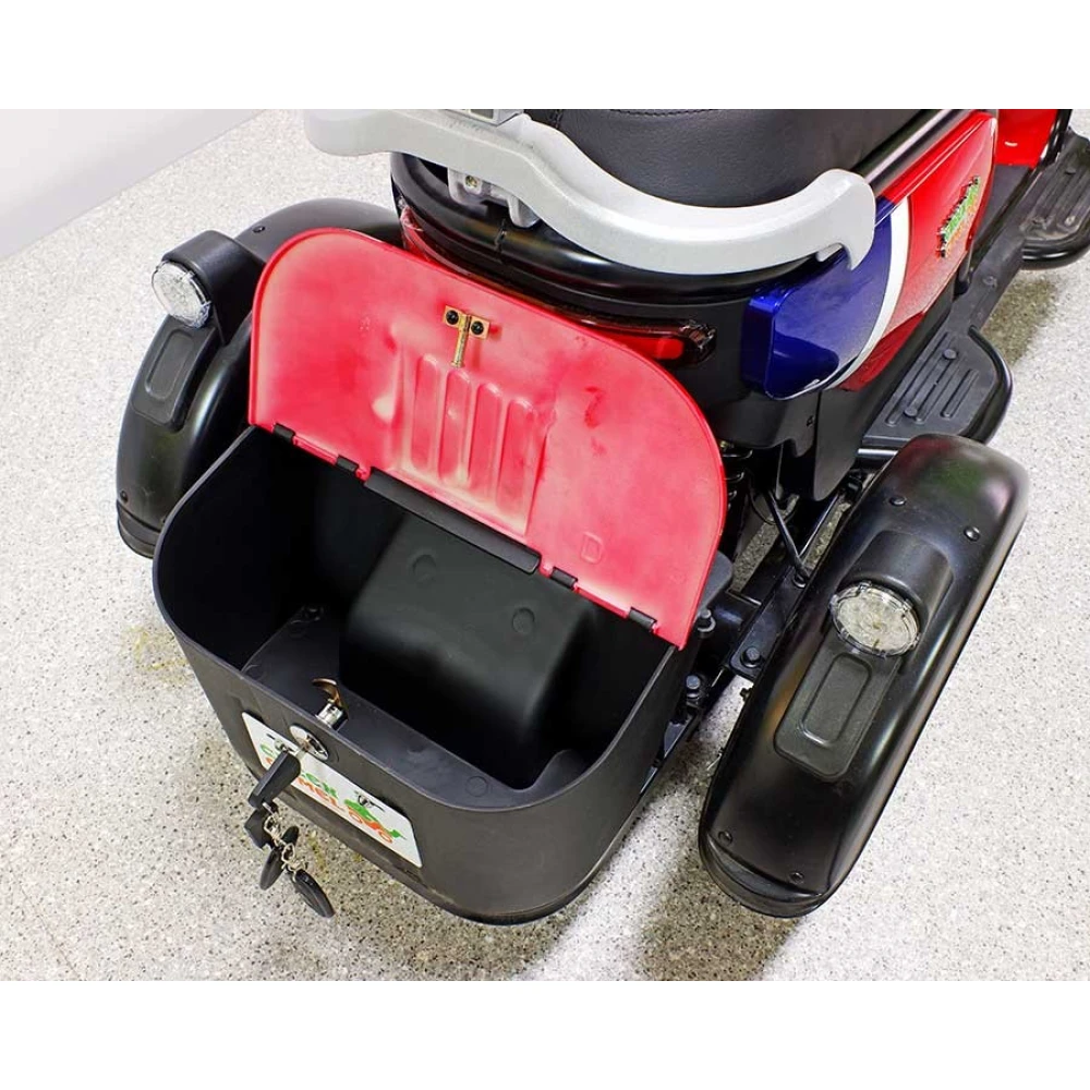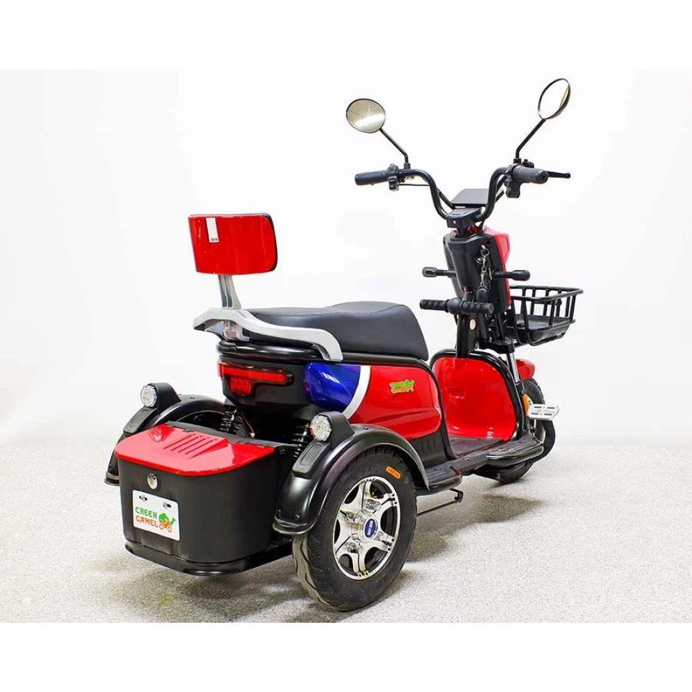Трицикл GreenCamel Фродо Q2 (60V 500W) Trike дифференциал, красного цвета – стильная модель по приятной цене. Прочная конструкция трицикла рассчитана на максимальную грузоподъемность и подойдет для взрослых пользователей. Техника прекрасно подойдет для работы на садовом участке или перевозки грузов в складских помещениях, на ней приятно будет прокатиться по городской местности.