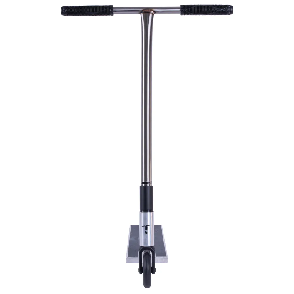Прочный руль из стали с внешним диаметром 34.9 мм, высотой 615 мм и шириной 540 мм обеспечивает надежное управление и комфорт даже при интенсивных тренировках. Вилка из алюминия с системой компрессии SCS отвечает за качественное гашение ударов, что особенно важно при выполнении прыжков и приземлений. Дека, также выполненная из алюминия, с интегрированной рулевой системой имеет оптимальные габариты: ширина 140 мм, длина 490 мм и футспейс 340 мм – все это способствует правильному распределению веса и стабильности в процессе катания.