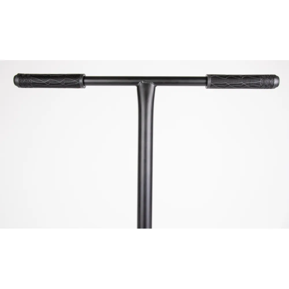 Отличительными деталями самоката является дека, передняя часть которой скошена и заварена. В качестве опоры для ноги и предотвращения случайного торможения служит стальной фендер.