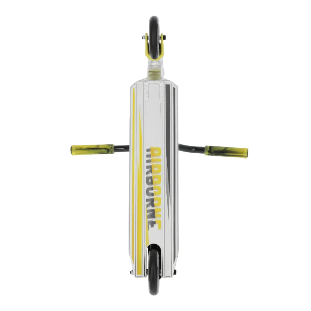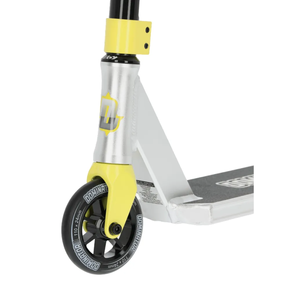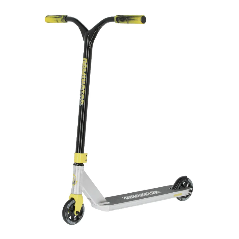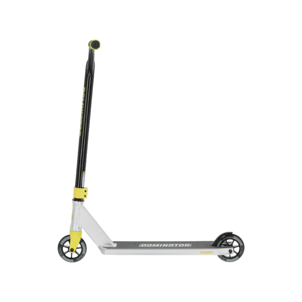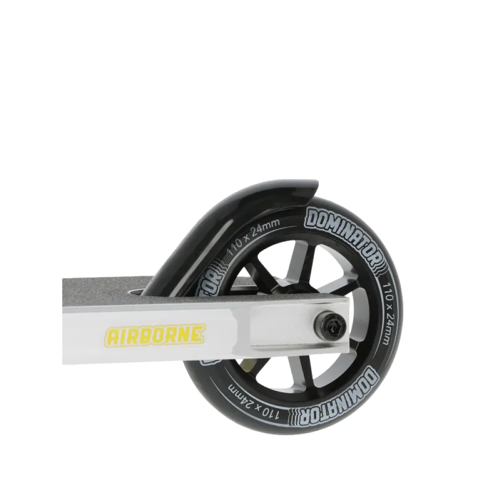 Трюковой самокат Dominator Airborne, 110 мм черно-зеленый – скоростная техника с прямоугольной нескользящей декой привлекла внимание начинающих райдеров и профи необычным дизайном и высоким качеством изготовления.